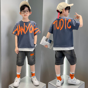 2022男童夏季套装中大童新款短袖短裤中大童两件套...