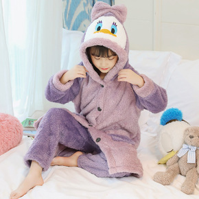 儿童睡衣秋冬季长毛绒睡袍套甜美可爱宝宝男女童珊瑚绒...