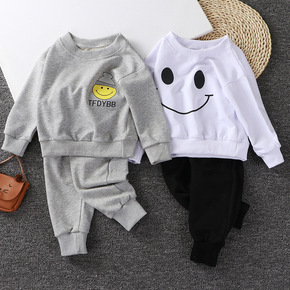 2020春秋外贸圆领字母数字7套装男女宝宝两件套0...