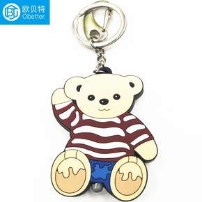 小熊款多功能带灯背面能印刷LOGO二维码软胶钥匙扣...