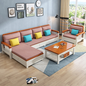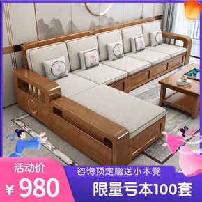 实木沙发小户型客厅冬夏两用沙发床新中式储物沙发L组...
