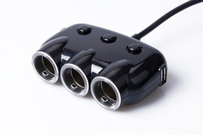 新款多功能智能一拖三点烟孔USB车载充电器15W手...