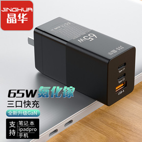 晶华 氮化镓充电器65W PD三口快充头QC3.0...