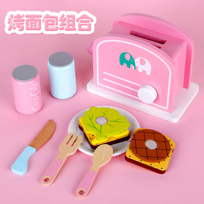 儿童仿真木质面包机咖啡机煎饼机搅拌机组合男女孩厨房...