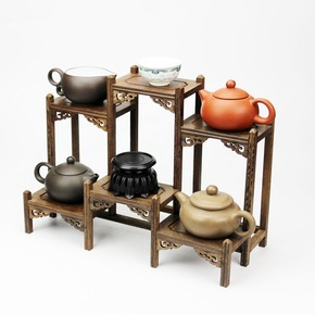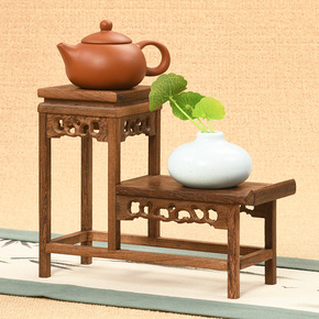红木鸡翅木多宝架紫砂壶架茶具古玩博古架花瓶盆景摆件...
