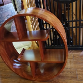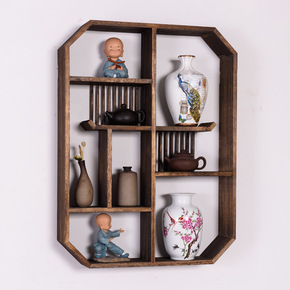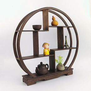 新中式玄关壁挂客厅墙面置物架茶室圆形墙壁收纳架壁挂...