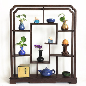 实木中式小博古架茶壶茶具架展示架置物架鸡翅木小多宝...
