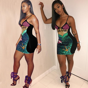 亚马逊eBay2018秋季新品欧美女性感夜店亮片吊...