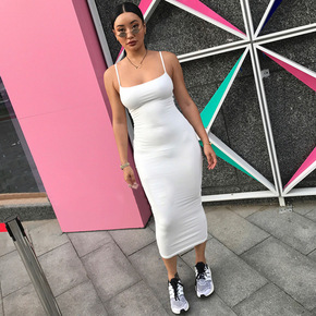 夜店性感一字领吊带修身打底包臀针织连衣裙欧美风20...