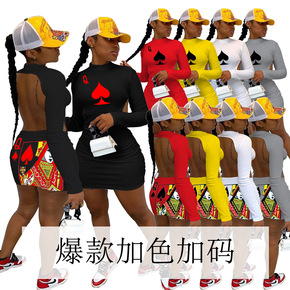 W8113独立站亚马逊Q扑克黑桃元素长袖露背性感夜...