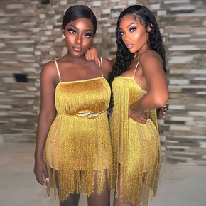 2022欧美外贸亮片抹胸挂肩铅笔裙性感弹力夜店连衣...