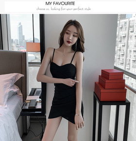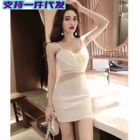 5079实拍夜店女装吊带低胸修身时尚包臀短裙露胸性...