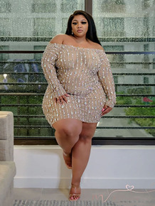跨境外贸连衣裙渔网紧身透视长裙夜店派对裙网格闪钻圆...