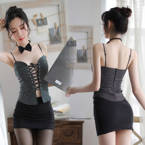 外贸情趣内衣批发 性感透视紧身 包臀挂脖短裙 夜店...