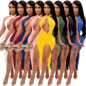 已恩 夏季网红性感夜店显胸开叉不规则露背中长款包臀...