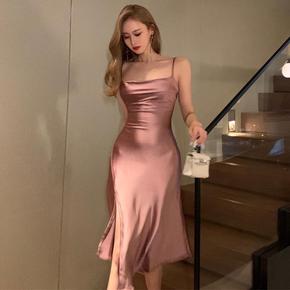 性感夜店装深V领吊带露背修身显瘦包臀开叉鱼尾长连衣...