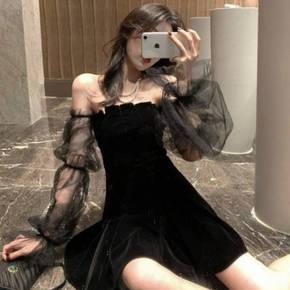 吊带锁骨一字肩连衣裙子2022年新款女装性感夜店露...