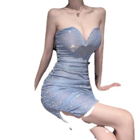 抹胸裙高级感性感闪粉领抹胸礼服低胸紧身包臀夜店连衣...