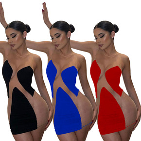 2022年亚马逊新款高领紧身无袖连衣裙 欧美亚马逊...