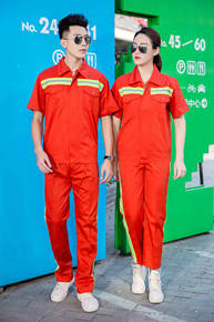 夏季环卫反光条半袖劳保工作服套装男汽修工作服厂服车...