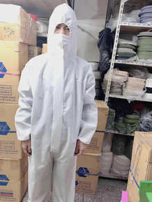 现货一次性防护服 民用白色连体无纺布透气防尘防水隔...