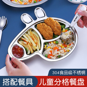 304不锈钢儿童餐盘家用幼儿园分格盘分隔三格小孩防...