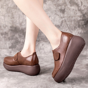 大头真皮小皮鞋女英伦风复古黑色软底舒适乐福鞋软皮懒...