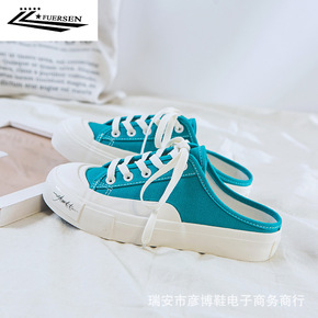 2021女帆布网红小白鞋大头夏季清凉半托修脚韩版i...