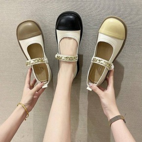 时尚金属链条厚底玛丽珍单鞋网红丑萌大头鞋女复古学院...