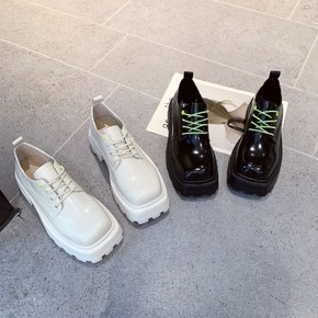 2021夏季新款复古黑色小皮鞋女松糕厚底鞋英伦风方...