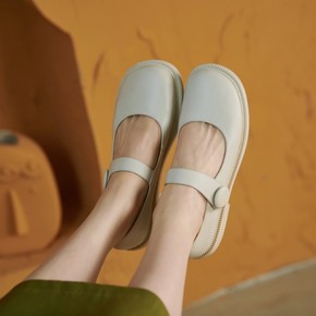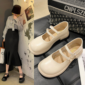 日系小皮鞋女2021新款韩版圆头单鞋复古平底大头娃...