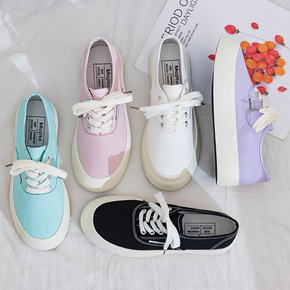 代发2021夏季新款韩版大头帆布鞋女系带复古港味溶...