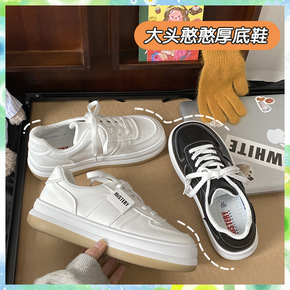首谷秋冬新款圆头真皮小白鞋女厚底大头松糕底面包鞋百...