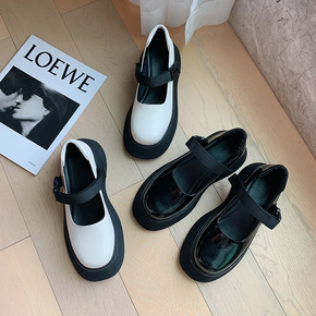 现货松糕底大头娃娃鞋2021秋新款复古玛丽珍鞋浅口...