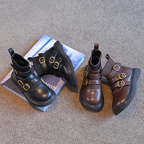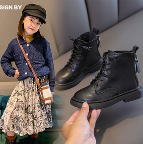 2020秋冬新款儿童靴子时尚英伦风女童马丁靴软底皮...