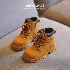 女童马丁靴儿童短靴男童靴子单靴宝宝皮靴1-5岁秋冬...