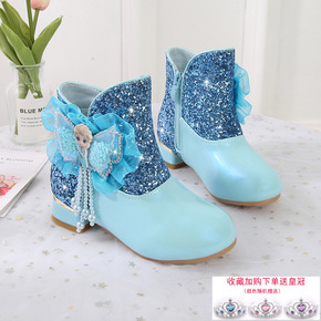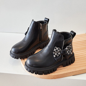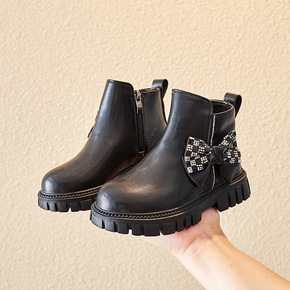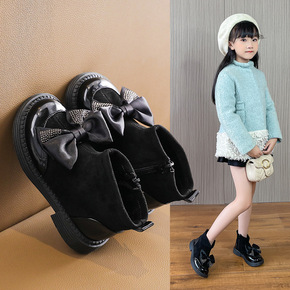 女童蝴蝶结皮靴2021秋冬季新款儿童韩版软底单靴女...