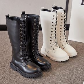 2021女童蝴蝶结单靴黑色过膝高筒皮靴子长靴春秋冬...