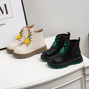 2022秋冬潮靴休闲笑脸儿童靴子女童黑色马丁靴低筒...