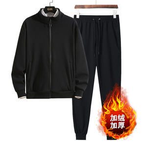 厂家直销秋冬季男士卫衣套装加绒加厚开衫立领套装男纯...