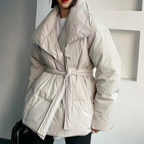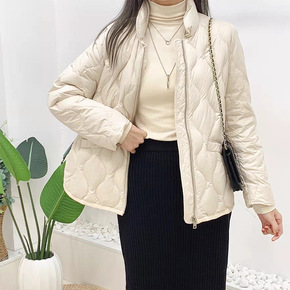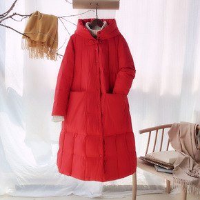 20冬季原创正品时尚女装立领开衫盘扣纯色宽松百搭羽...