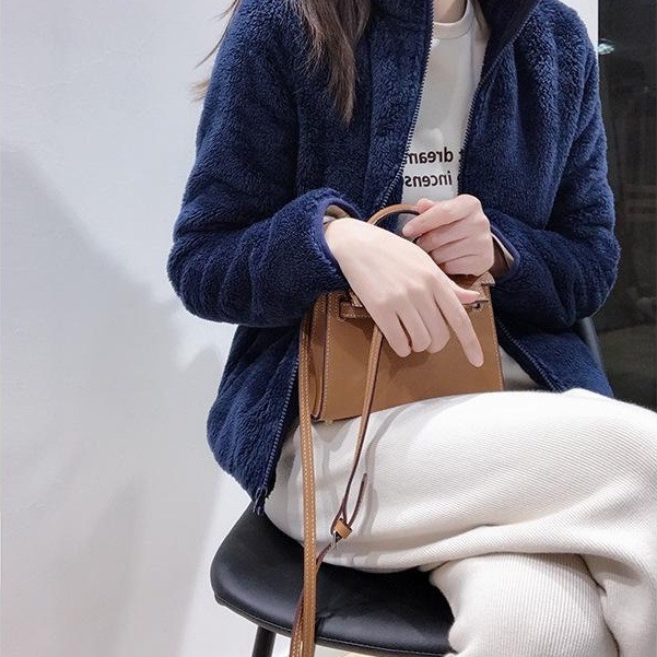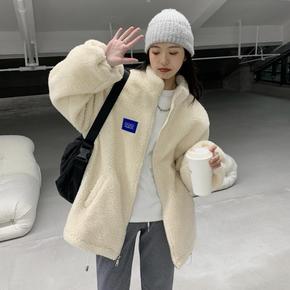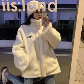 2021年保暖立领羊羔毛外套女秋冬宽松休闲工装上衣...