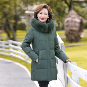 年轻款妈妈装大毛领白鸭绒连帽羽绒服开衫修身加厚保暖...