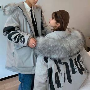 外贸出口欧单亲子棉衣防寒服大童棉衣可卸毛领棉衣加厚...