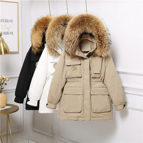批发真狐狸大毛领中长款羽绒服女冬季加厚修身韩版20...
