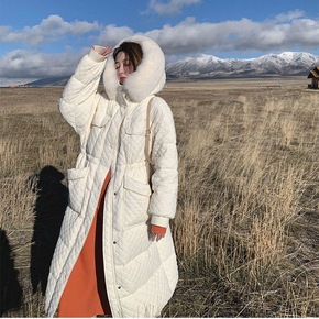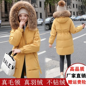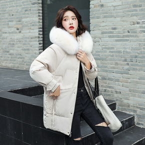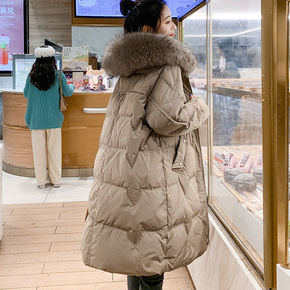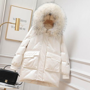 羽绒服女中长款冬季新款大毛领宽松加厚白鸭绒外套长款...