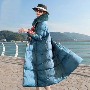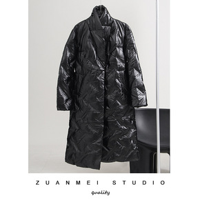 出口外贸免洗/白鸭绒亮面羽绒服女中长款冬季2021...