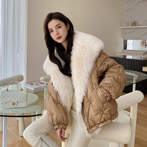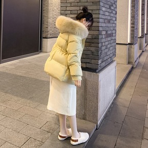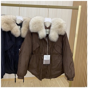 2022新款特卖大毛领羽绒服女韩版宽松牛角扣时尚中...