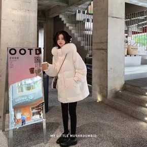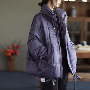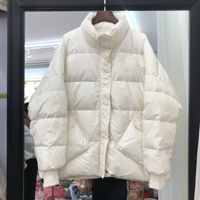 木瓜牛奶冬季新品韩版休闲宽松大码显瘦立领压皱长袖羽...