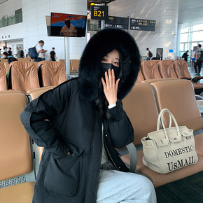 max家2021欧美冬季新款女士加厚羽绒服长款狐狸...